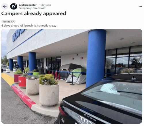 为迎接发布,顾客们在加利福尼亚州塔斯廷的Micro Center门外露营,搭建帐篷。不过露营者在reddit表示,他们只是为了个人使用,并不打算转售。