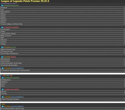 体育资讯1月28日报道宣称 今日设计师在社媒更新了25.S1.3版本更新名单,贾克斯、洛加强;肉杰斯、蝎子削弱,详细内容如下: