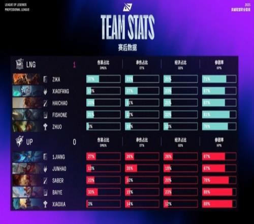 中期xiaofang佛耶戈抢下小龙帮助LNG听牌土龙魂,后续厄塔汗被LNG四人控下,尽管Zika兰博被击杀,UP仍未扳回劣势。