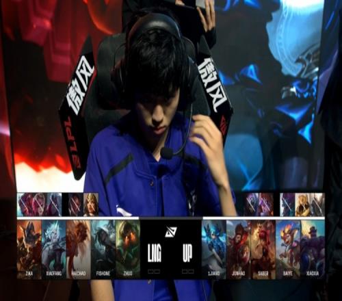 第一局前期haichao岩雀在巢虫团中拿下一血和双杀,Zhuo泰坦钩到Saber安妮再添一人头,LNG打出0换3建立经济优势。