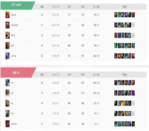 首局比赛XG飞机火枪酒仙三核对线期并没打出优势,中期Nisha獣配合队友不断找到节奏,虽然自己和SaberLight人马也送了两波!关键二代肉山团niu酒仙冲太前被秒,楼的飞机开着BKB去追蝙蝠结果自己白给!Liquid拿下二代肉山之后借助Boxi蝙蝠先手将XG众人困在高地,最终高地团楼的飞机被强杀之后XG也不墨迹敲出GG!