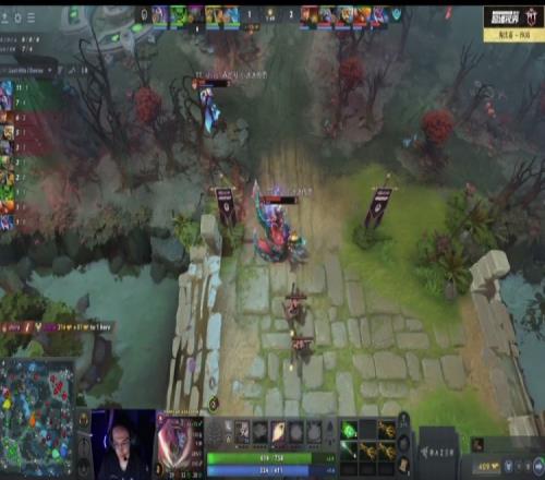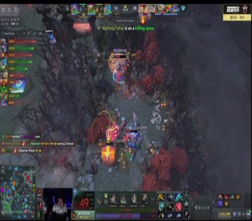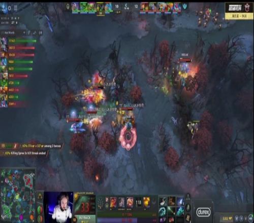 【18分钟】Tidebound先在中路找到机会包夹击杀Maladych帕格纳,随后又在上路利用y干扰者瞥视框拉回来tofu暗影萨满完成击杀。