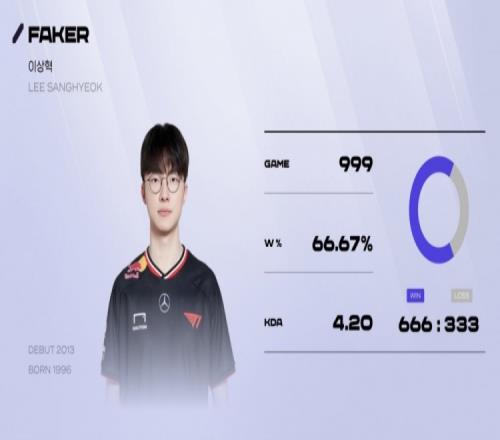 体育资讯1月21日报道宣称 Faker选手在2013年出道,本周他将迎来自己的第1000场比赛。