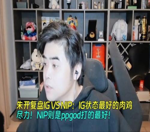 赛后朱开开播复盘比赛,朱开认为IG全队状态最好的是Rookie,IG的阵容搭配前期就是会有劣势。NIP战队打得最好的是辅助ppgod。