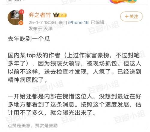 啊网传知名网文作家猥亵女领导送去检查发现神经失常已经疯了
