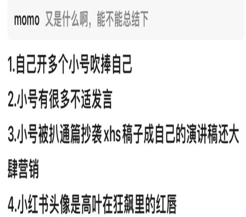 今日更是被脱粉粉丝控诉,在狂飙之前开诸多小号给自己造势,小红书小号头像是高叶,抄袭小红书搞子成自己演讲稿。