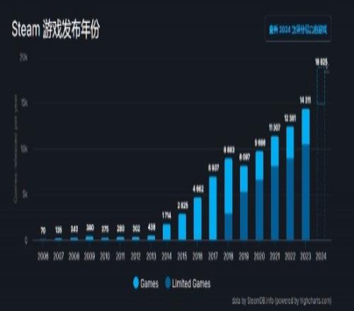 体育资讯12月26日报道宣称 据数据统计网站SteamDB消息,2024年Steam平台共发布了18825款新游戏,相比往年大幅增长。这一数字引发了玩家热议,相关话题在社交平台Reddit上讨论激烈。