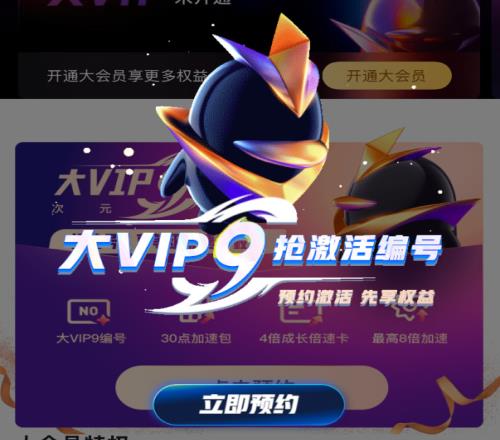 体育资讯12月17日报道宣称 近日,腾讯 QQ 日前开启大 VIP9(大会员 9)的预约,将于 2025 年 3 月上旬正式上线大 VIP9。