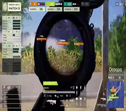 体育资讯12月9日报道宣称 PGC2024正式打响,首日第三局,阶段六场上只剩下五支队伍,KDF冲击TFT房区拿到分数。圈型收缩后VP选择开车进圈,FLC被两队夹击。FLC选择主动出击与VP交火,但损失惨重只剩房区一人。VP扶人过程中,KDF选择两边同时开战。FLC、VP相继被淘汰。最后KDF依靠人数的优势拿下本局,取得胜利拿到三连鸡。
