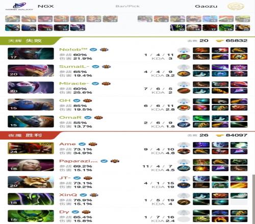 天辉Nigma:Omar马格纳斯、GH蓝胖、SumaiL石鳞剑士、Nolob恐怖利刃、Miracle圣堂刺客。