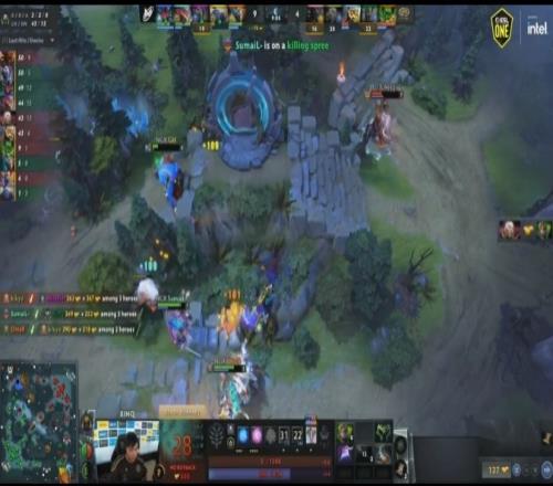第一局凭借SumaiL石鳞剑士和Omar马格纳斯在对线期打出了人头优势,并且抢打了一代肉山,不过在二代肉山团战前,双方爆发小团战,猛犸交了大招,又被XinQ拉比克偷了拱,导致二代肉山团溃败,Gaozu上高,拉比克拱回Nigma核心圣堂秒杀,一波团灭Nigma拿下第一局。