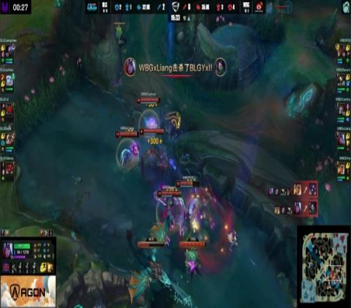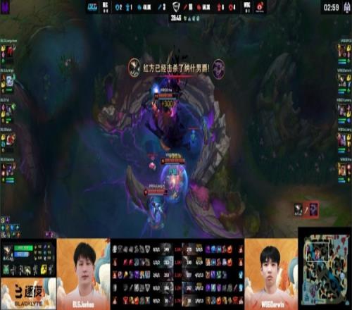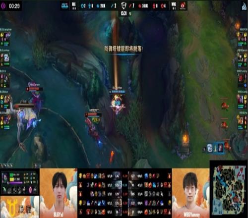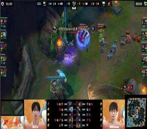 最终WBG冲上BLG高地,Xiaoxia牛头高地顶炮车反被秒,WBG推平BLG基地先下一城。