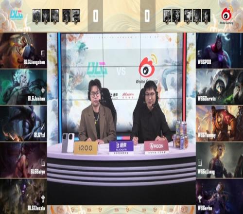 蓝色方BLG:Liangchen贾克斯、Junhao佛耶戈、Yxl阿卡丽、Baiye飞机、Xiaoxia牛头
