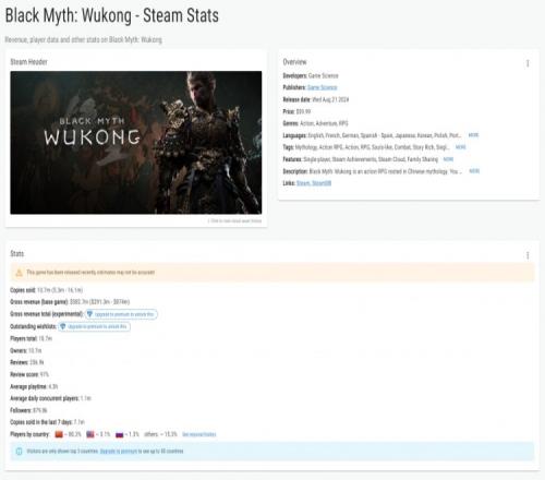 这么夸张预测机构称:《黑神话:悟空》销量已突破1070万份