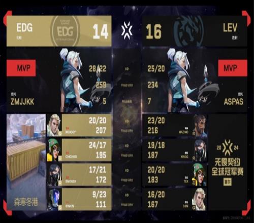 加时赛第五局,EDG带包去A,jjkk侧面对枪带走aspas,com在A双杀,残局EDG二打三顺利下包,但Smoggy独自1V3,LEV一人拆一人架击杀Smoggy,LEV15-14EDG。