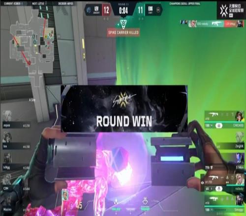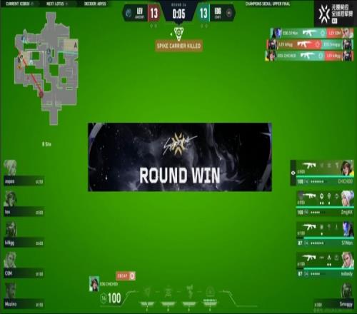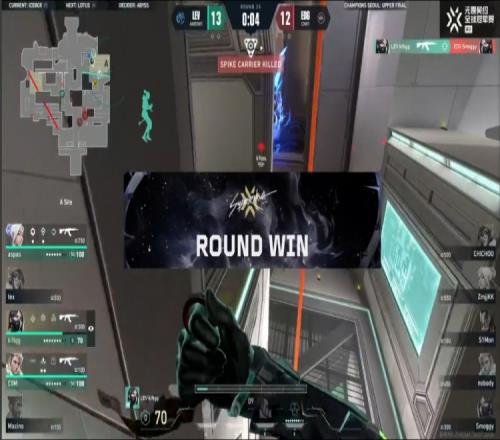 加时赛第一局,EDG先攻选择打B,Mazino穿烟直接白给,拉扯过后EDG继续打B,倒数30s,aspas带走s1mon,tex击杀chichoo,Smoggy来A保枪被缴,LEV13-12EDG。