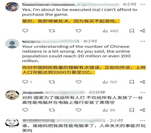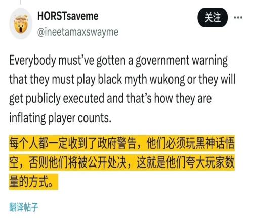 外网带《黑神话悟空》节奏:中国玩家收到了警告不玩的话将被处决