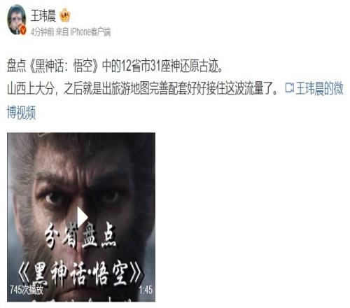 “盘点《黑神话:悟空》中的12省市31座神还原古迹。山西上大分,之后就是出旅游地图完善配套好好接住这波流量了。 ”