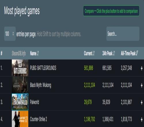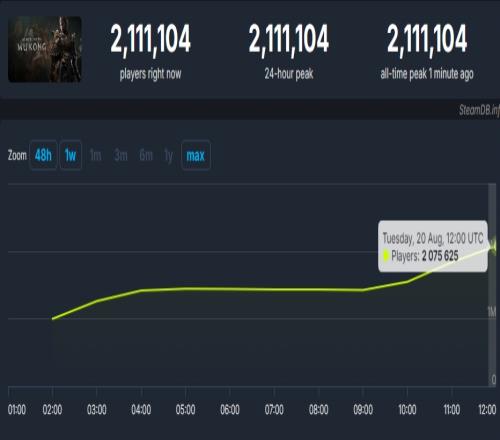 体育资讯08月20日报道宣称 据Steam官方数据,《黑神话悟空》Steam同时在线人数达2111104人,超越《幻兽帕鲁》,成为Steam同时在线榜历史第二。