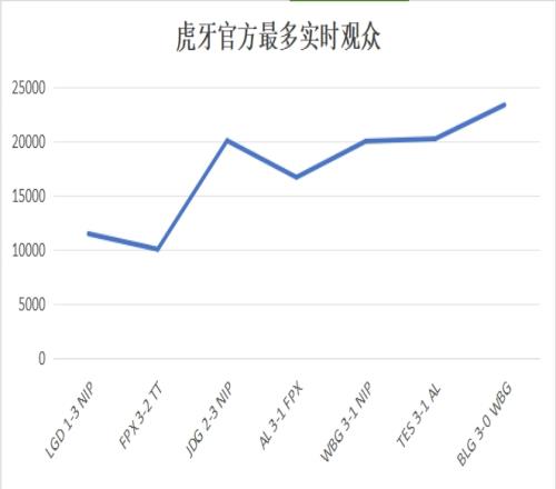 同时昨日也进行了LPL夏季季后赛四强的第一场,BLG最终3-0横扫了WBG;数据显示本场虎牙英雄联盟赛事官方实时在线人数最多23352人,为目前最多,但也不及无畏契约;