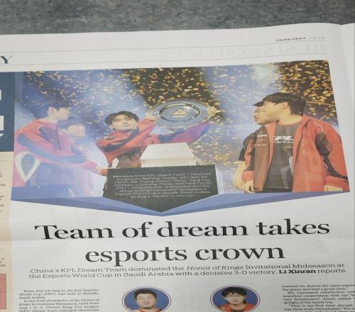 KPL梦之队登中国日报:代表KPL传播电子竞技的魅力与正能量