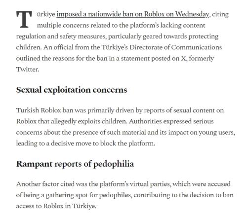 来自彭博社的一份报告指出,Roblox在2023年向美国失踪和受虐儿童中心报告了13,000 多起事件,在美国有24名犯罪嫌疑人因诱骗和虐待儿童而被捕。Roblox公司称该报告包含“明显的误判”,未能“反映在线儿童安全的复杂性”。