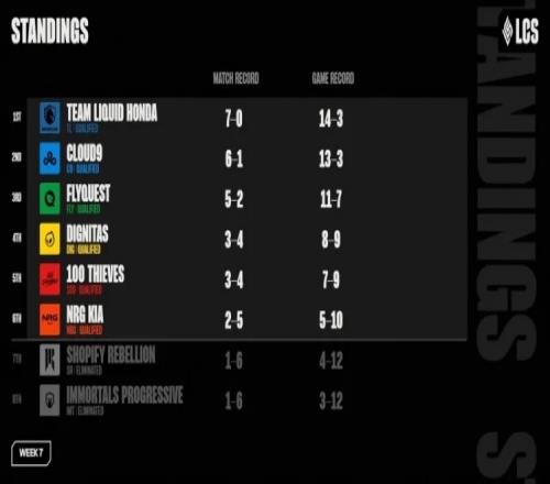 北美LCS夏季赛常规赛结束,TL、C9常规赛前二离S14只差一步