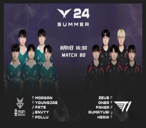 体育资讯8月11日报道宣称 2024LCK夏季赛继续进行,今日第二场比赛由T1对阵BRO。
