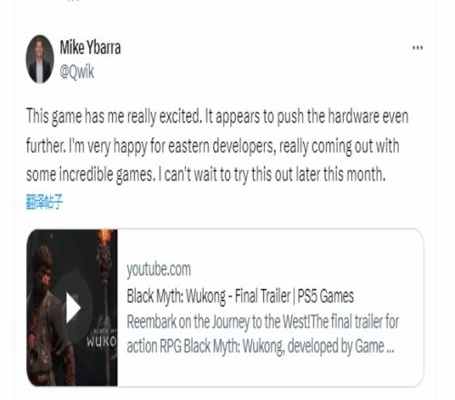 他在X上分享了《黑神话:悟空》的最终预告,并同时表示:“这款游戏让我兴奋,它似乎进一步推动了硬件行业的发展。我为东方开发商感到高兴——他们真的推出了一些令人难以置信的游戏,我迫不及待地想在本月尝试一下。”