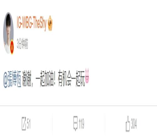 什么梦幻联动!TheShy回应张博恒:谢谢,一起加油!有机会一起玩