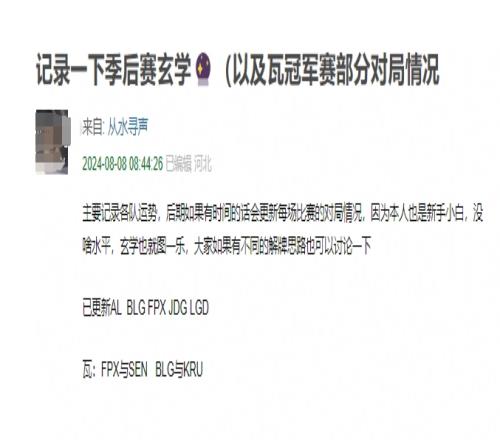体育资讯8月8日报道宣称 今日有网友在豆瓣开帖,称将用玄学分析LPL各队伍运势,并称BLG赢了也不能松懈,要及时为未来做打算~
