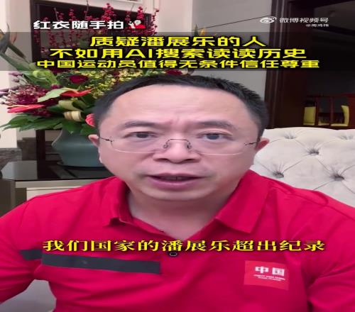“菲尔普斯超出世界纪录就是宇宙飞鱼,我们国家的潘展乐超出纪录,就不是人类可以做到的事。为什么有人总是见不到光,就想把别人的灯给熄灭呢?奥运会的口号不就是更快更高更强吗?希望每一位中国的奥运健儿都能被无条件的信任、理解、支持和热爱。”