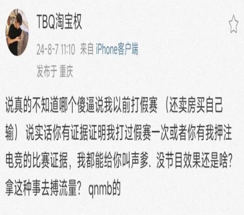 体育资讯08月07日报道宣称 LGD战队名宿打野TBQ更新微博怒斥假赛言论:
