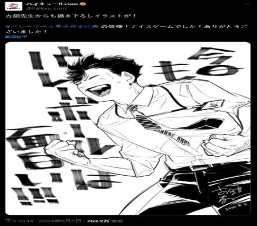 古馆春一在比赛后发出绘制的插图,并感谢所有男排成员的付出,带来这么好的比赛,也让人感受到排球是一个如此有趣的运动。