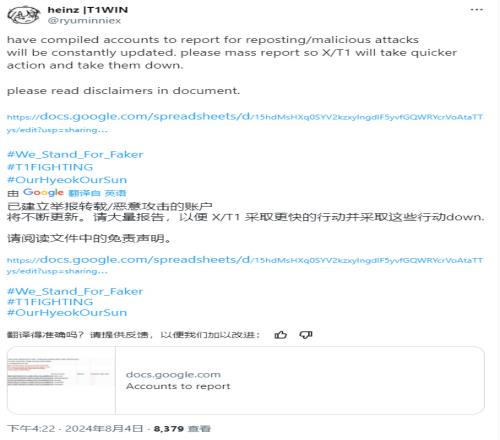 反黑站海外T1粉丝整理对Faker攻击的文章和账号:名单约70条