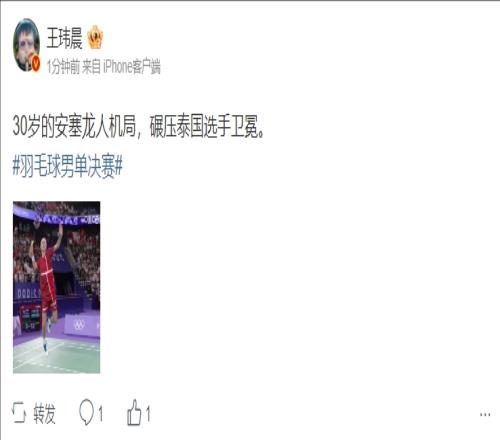 体坛周报记者王玮晨更博:30岁的安塞龙人机局,碾压泰国选手卫冕。