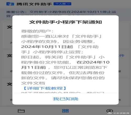 因业务调整,腾讯宣布10月文件助手小程序停止运营