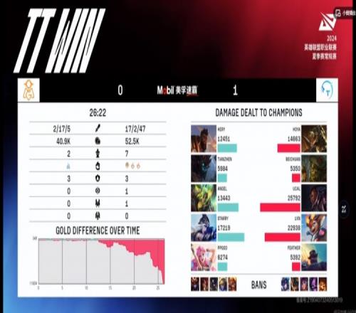 【22:30】TT推掉中二塔,但是Tianzhen大树开大配合Angel泽丽抓死了1xn的斯莫德!OMG强行开大龙,正面团战Feather布隆举个盾给伤害挡完了!没人管的ucal卢锡安伤害拉满,配合hoya鳄鱼进场打出0换4!TT收下大龙!经济差7K!