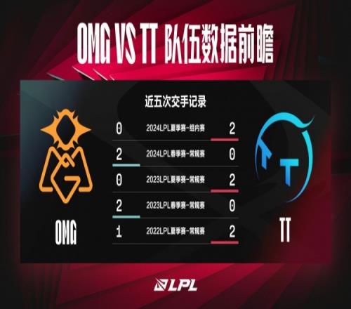 体育资讯8月5日报道宣称 英雄联盟赛事数据官博发布2024LPL夏季赛OMG vs TT数据前瞻,原文如下: