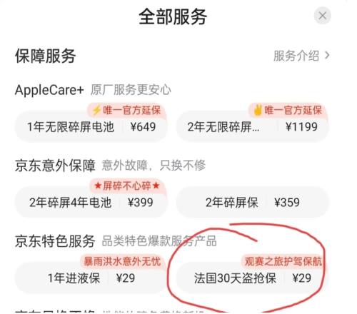 然而近日京东自营旗舰店在其平台上推出了一项创新的保障服务——“法国30天盗抢保”,旨在为即将前往法国观看奥运会的消费者提供额外的安心保障。这一服务特别针对手机这一易携且高价值的个人物品,旨在应对在异国他乡可能遭遇的不测风云。