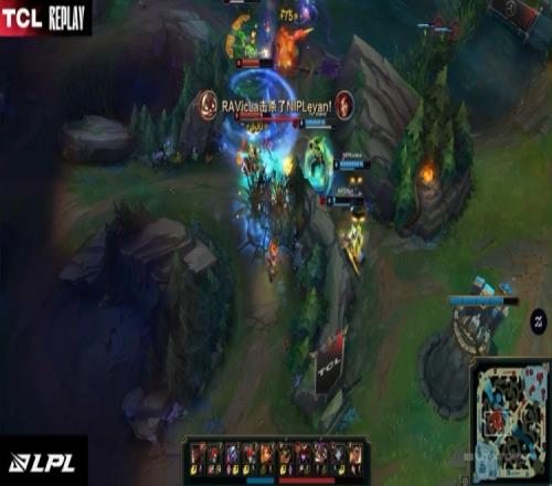 【7:04】芮尔河道控到草丛回城的婕拉,婕拉交出闪现,女坦过来卖掉自己,RA三人穷追不舍收掉女坦人头。