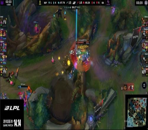 【38:01】NIP下路推进拔掉RA门牙,烬被电龙魂电死,龙女高地金身等死,小炮再杀龙女,NIP推掉RA基地先下一城。