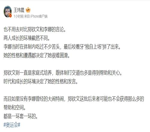 体育资讯08月04日报道宣称 媒体人王玮晨就郑钦文赛后的采访言论,发表了自己的观点: