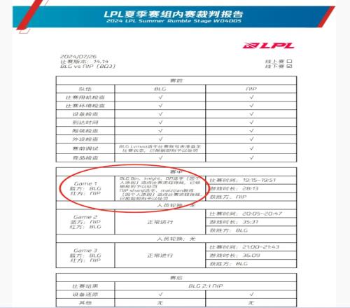 体育资讯8月4日报道宣称 今日LPL赛事官网发布近期常规赛的裁判报告,其中BLG vs NIP的裁判报告如下: