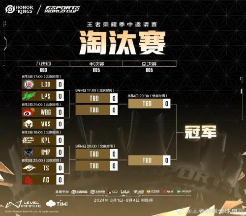 EWC王者荣耀项目淘汰赛赛程:BO3单败淘汰制,8月4日23:30决赛