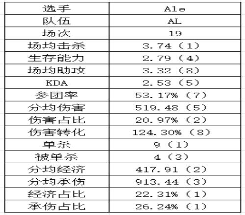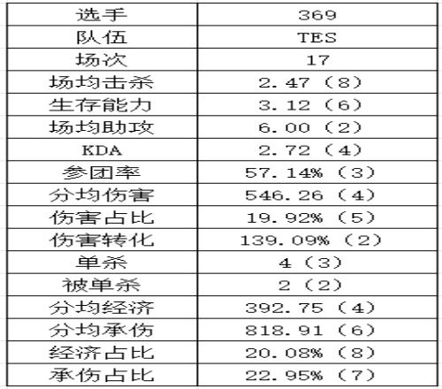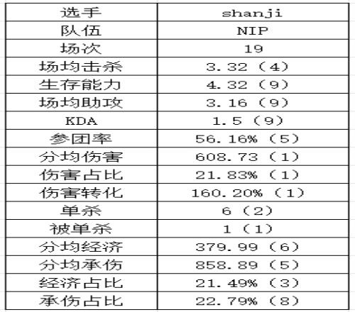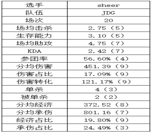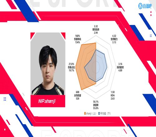 登峰组上单数据:shanji直接shy化sheer多项未能超过平均值