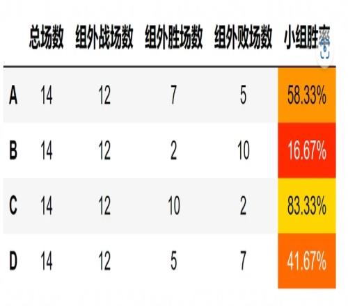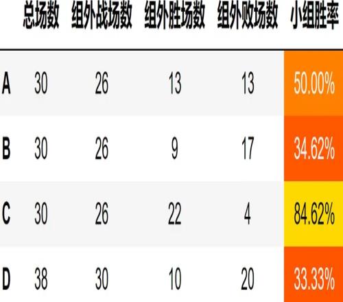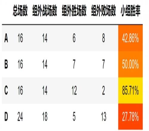 C组才是最强的常规赛各组胜率B、D组成沙包C组称霸登峰、涅槃