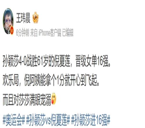 媒体人王玮晨表示:欢乐局,倪阿姨能拿个1分就开心到飞起。