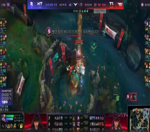 【30:52】第二条大龙刷新,T1打掉饰品眼直接rush掉大龙!KT看都不看一眼直接放!经济差一万了!