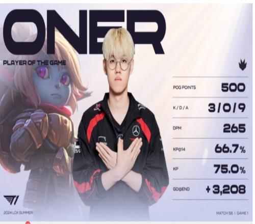 Oner波比无限帮上养肥凯南Keria芮尔团战大秀操作T1赢首局